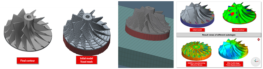 計(jì)算完工后部件的變形并減少/避免變形、最大限度地降低殘余應(yīng)力、優(yōu)化堆積方向、優(yōu)化支撐結(jié)構(gòu)、考察熱處理、基板和支撐結(jié)構(gòu)切除之后部件的狀態(tài)等,從而幫助用戶一次就成功生產(chǎn)出增材制造部件.