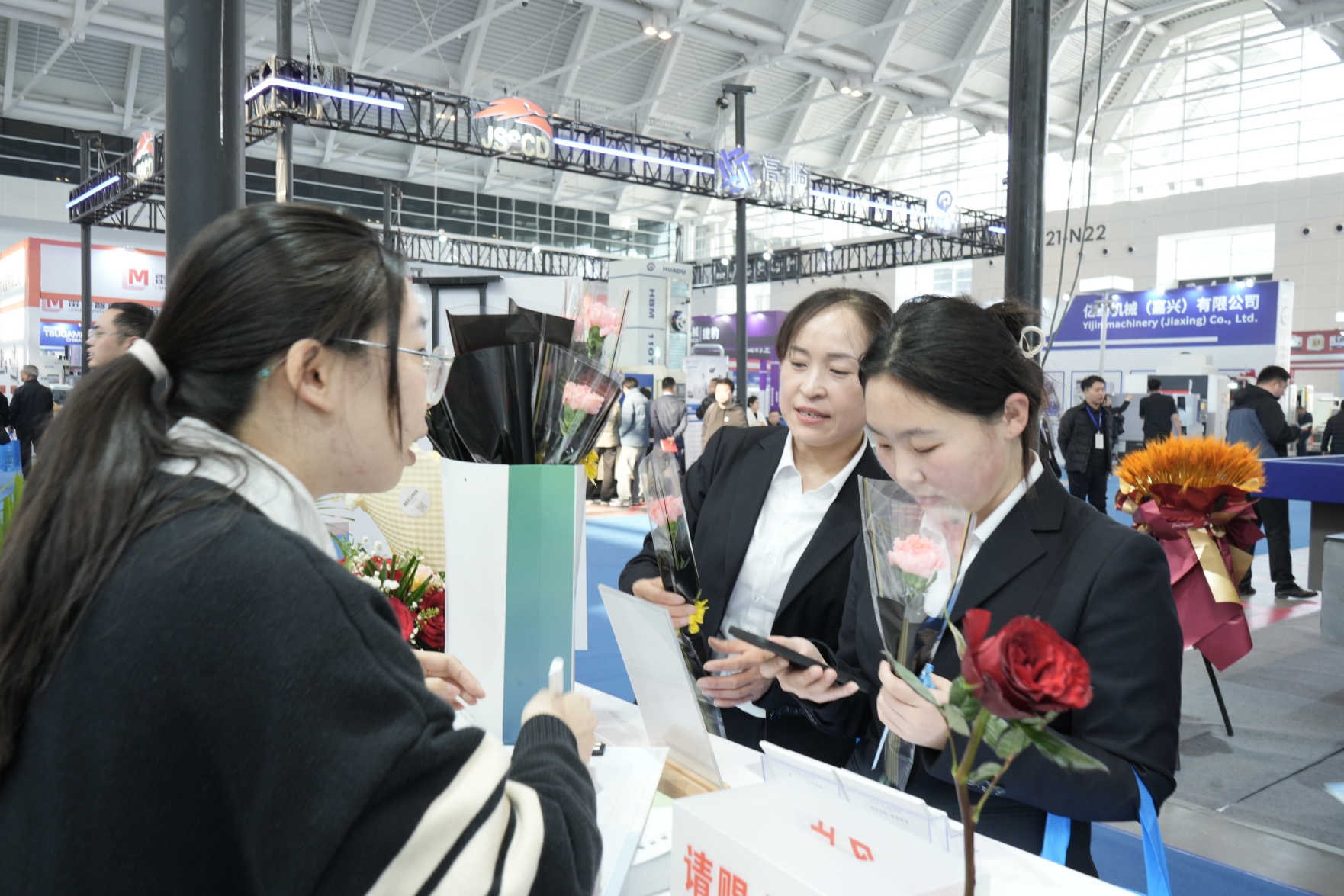 展會期間,華晟測量展臺禮品多多,活動不斷,扭蛋機(jī)抽獎、填寫問卷有禮等,吸引了眾多觀眾踴躍參加。恰逢3.8國際婦女節(jié),我們?yōu)榈秸箙⒂^的女性送上一朵鮮花,讓現(xiàn)場觀眾感受到了不一樣的驚喜。