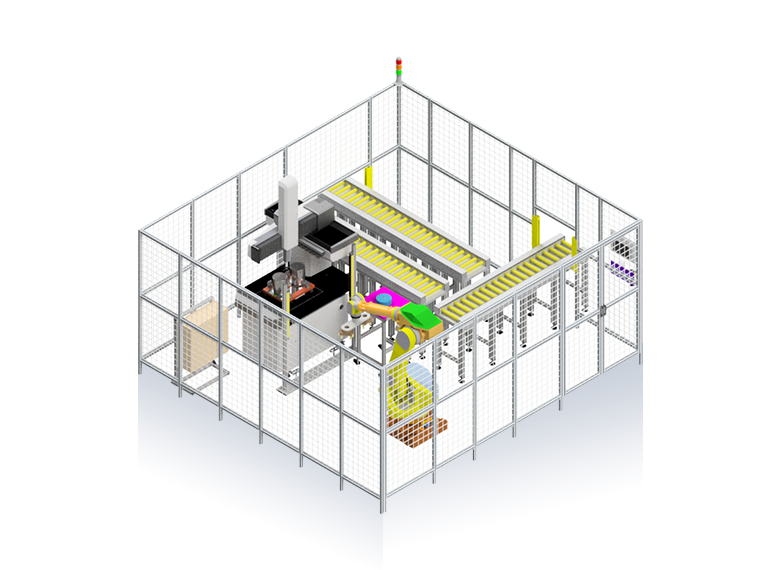 系統(tǒng)功能:自動(dòng)上下料工件、自動(dòng)識(shí)別工件類型、自動(dòng)定位裝夾、自動(dòng)測量、自動(dòng)分揀、數(shù)據(jù)自動(dòng)存儲(chǔ)、自動(dòng)顯示設(shè)備狀態(tài)及測量數(shù)據(jù)分析