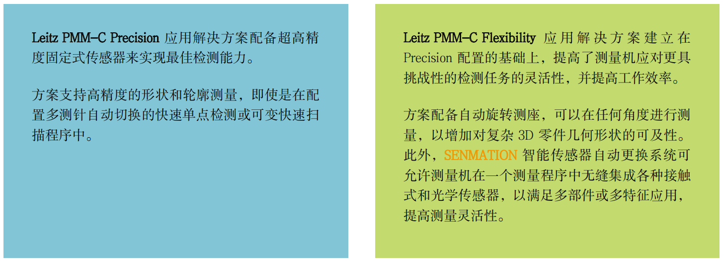 Precision 和 Flexibility 應(yīng)用解決方案,適用于公差嚴(yán)格的超高精度掃描測(cè)量需求和兼具高精度、靈活性的測(cè)量需求。每個(gè)應(yīng)用包都結(jié)合了傳感器、附件和軟件系統(tǒng),并提供一站式解決方案,以滿足用戶特殊應(yīng)用的檢測(cè)需求。